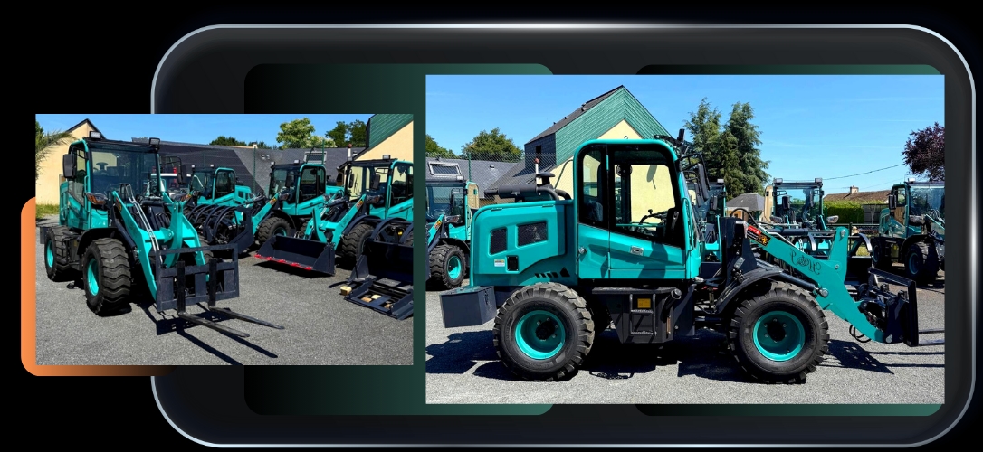 Nous proposons une gamme complète de chargeuses et mini-pelles 1T8, 2T5, 3T0, équipées de moteurs fiables (Kubota), avec options incluses